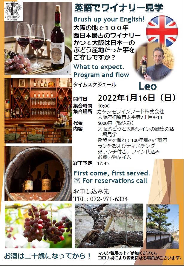 1/16(日)英語でワイナリー見学会開催のお知らせ