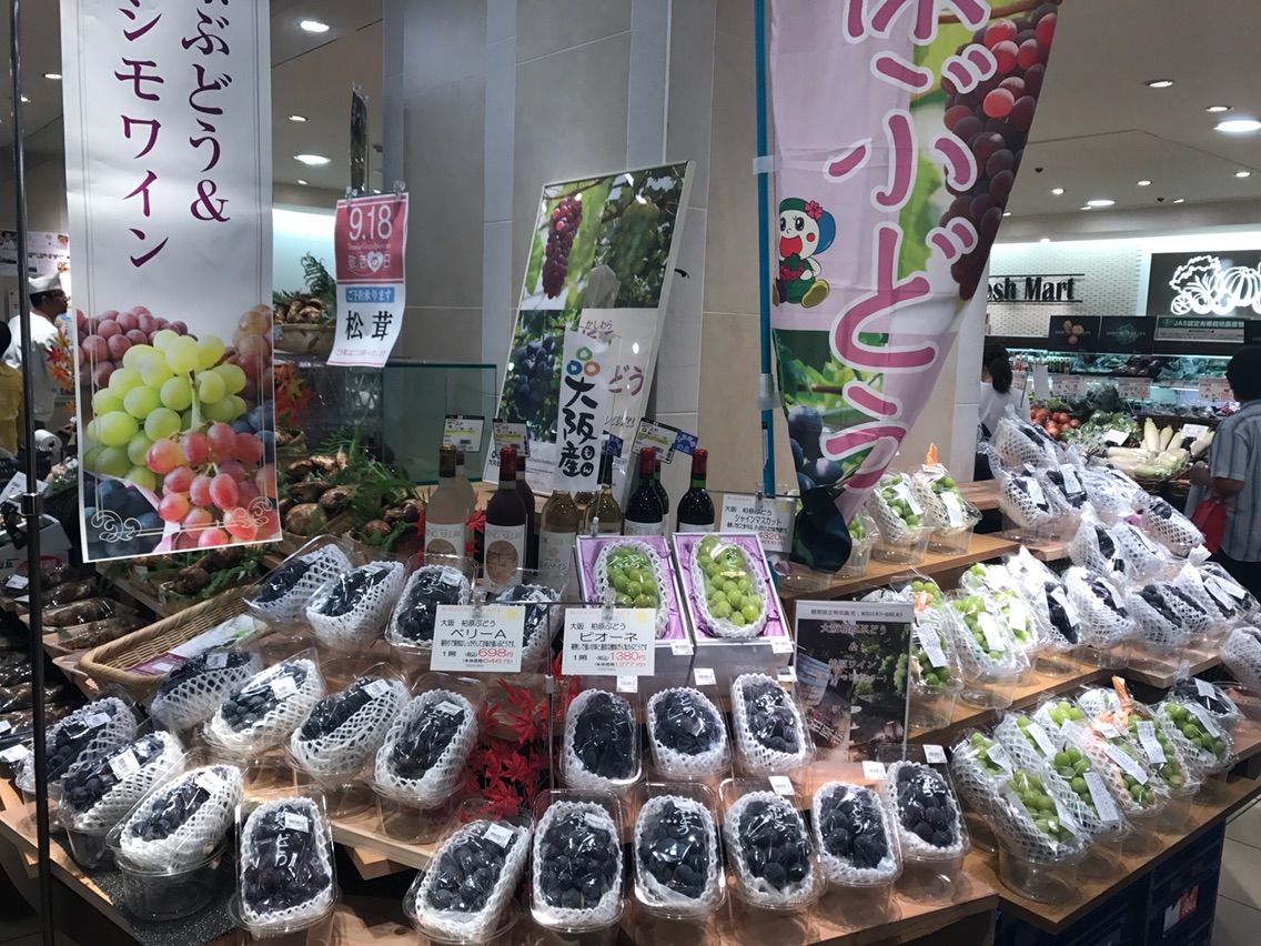 9月6日(水)まで、京阪守口店にて柏原のぶどうと柏原のワインの販売をしています。