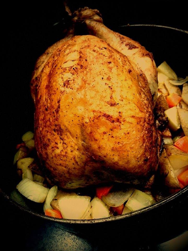 保温性の高い銅鍋で丸々1羽をローストすることで、